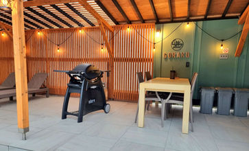 長さ 12 メートルのテラスには、バーベキュー エリア、リラクゼーション エリア。